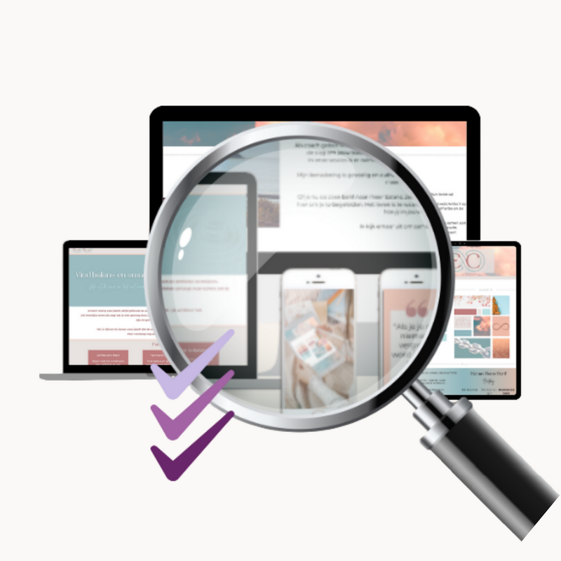 ✔ Branding + Website Audit: Complete check van je branding en website. Van uitstraling en gebruiksvriendelijkheid tot vindbaarheid en structuur. Inclusief verbeterplan met prioriteiten (€1199)